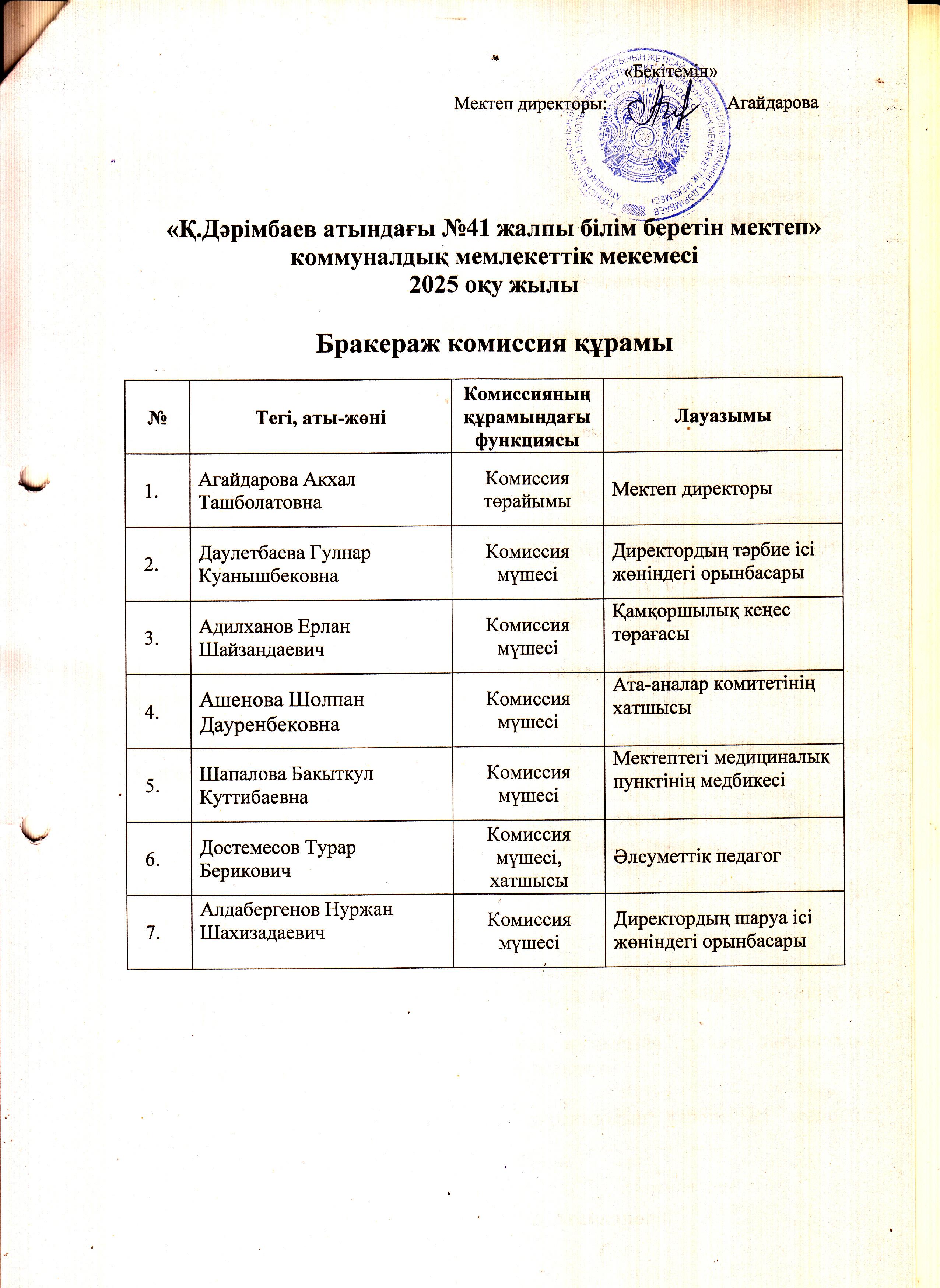 "Қ.Дәрімбаев атындағы №41 жалпы орта мектебі"